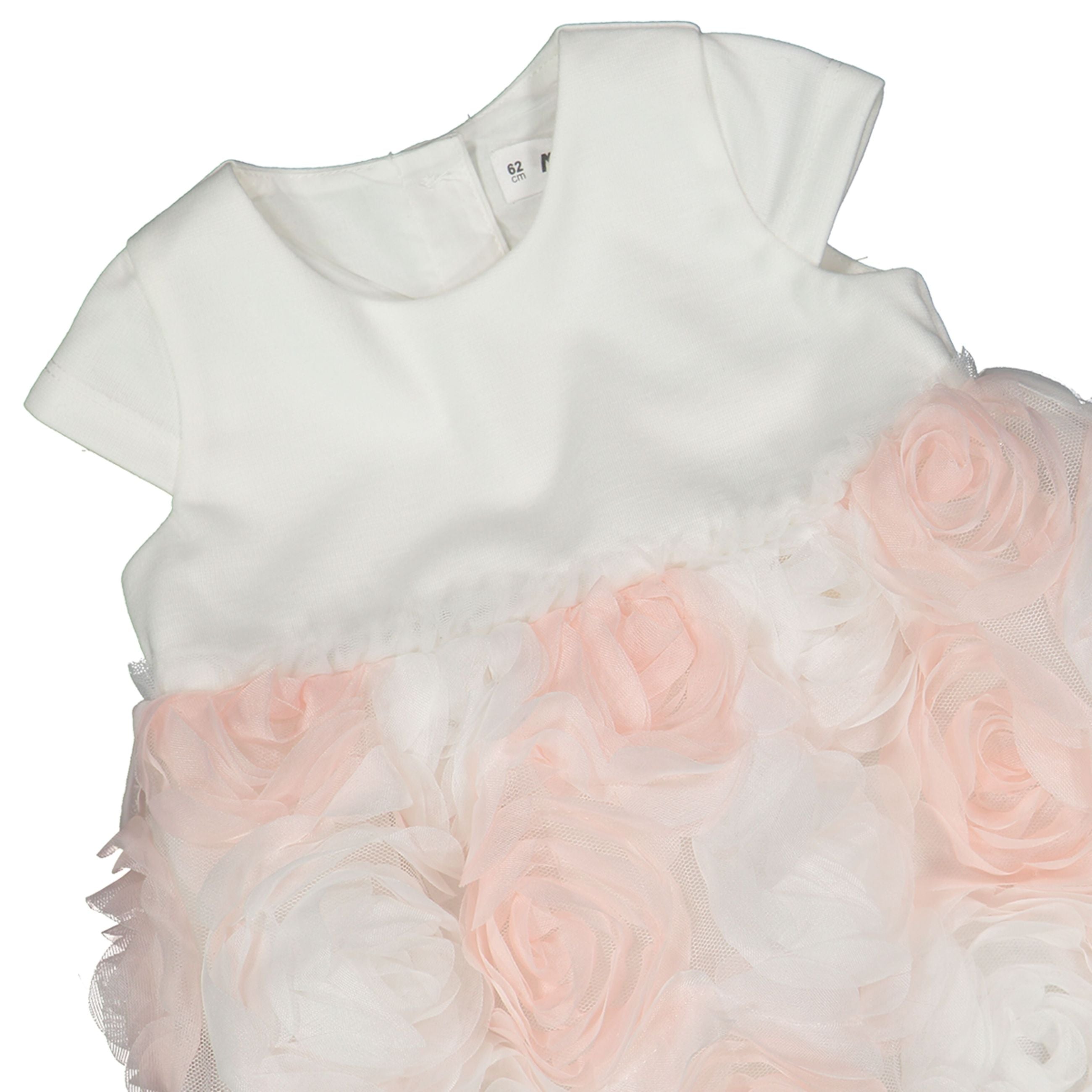abito cerimonia bambina rosa con bolerino panna – vestitino elegante in tessuto leggero pensato per occasioni speciali e momenti indimenticabili. modello con corpino panna a manica corta e chiusura posteriore, arricchito da gonna ampia in tulle lavorato con maxi rose applicate nei toni del rosa cipria e bianco, per un effetto scenografico e raffinato. completo di bolerino panna coordinato con chiusura a bottone, ideale per completare l’outfit con un tocco chic. perfetto per cerimonie, battesimi o eventi eleganti, da abbinare a ballerine e accessori delicati