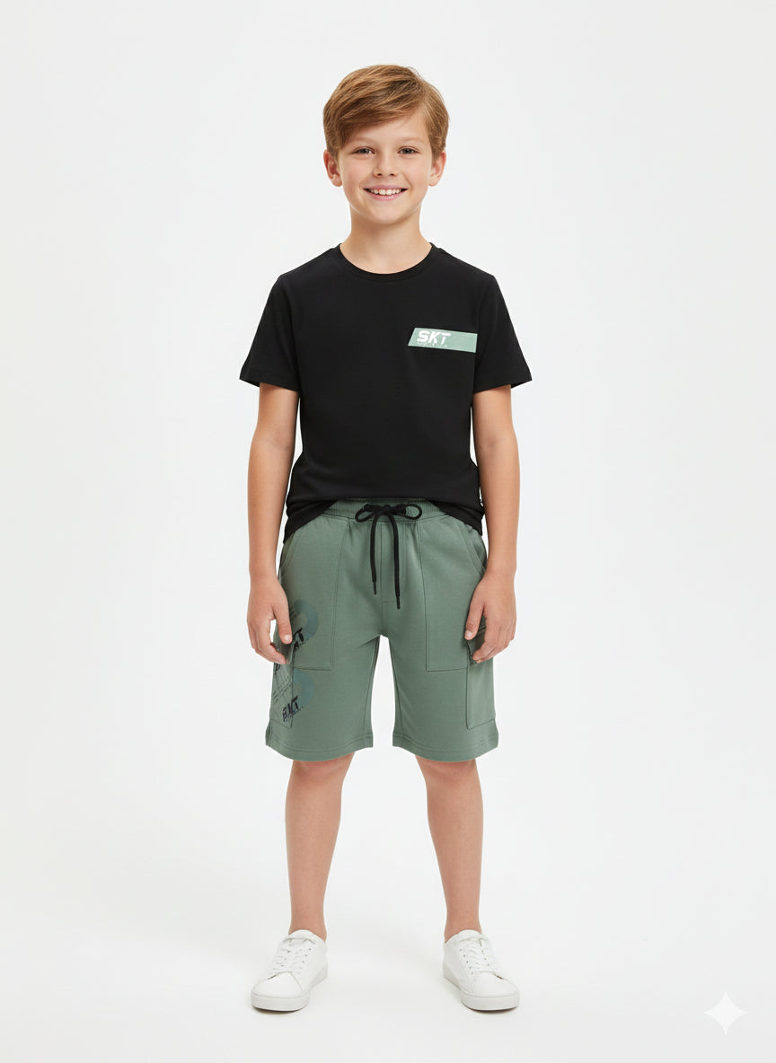bermuda bambino/ragazzo verde salvia con coulisse – pantaloncino in cotone leggero dalla linea pulita e moderna, perfetto per la stagione estiva. modello con elastico in vita e laccetto regolabile per una vestibilità pratica e confortevole, arricchito da tasche laterali funzionali. ideale da abbinare a t-shirt basic o stampate e sneakers per creare outfit casual versatili, adatti alla scuola, al tempo libero e alle vacanze.