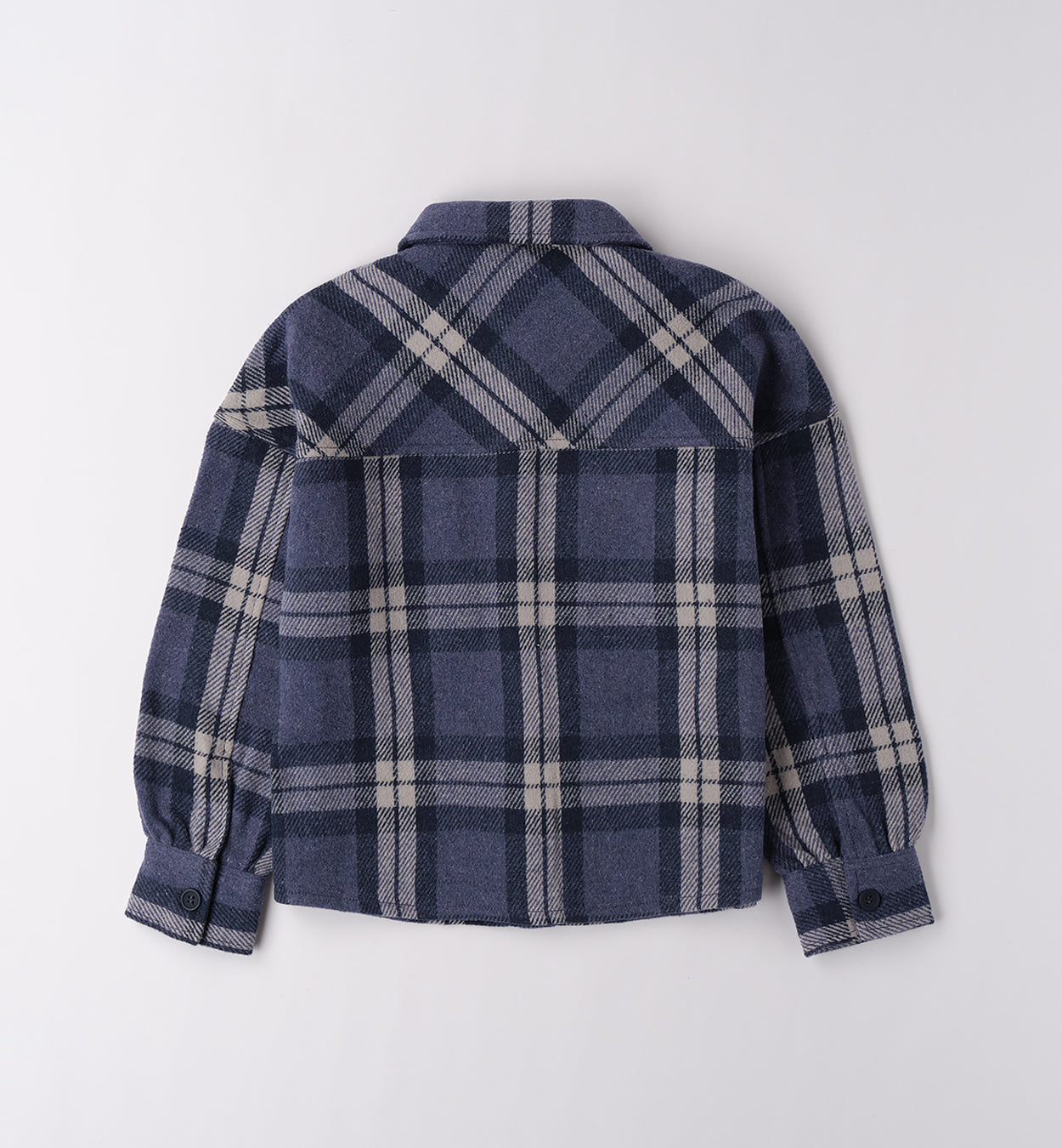 camicia ragazza a quadri blu e grigi – camicia in caldo tessuto a quadri con colletto classico, bottoni frontali e due taschini applicati. modello versatile dal taglio dritto, perfetto da indossare da solo o sopra una t-shirt per un look a strati. ideale per outfit casual di mezza stagione, da abbinare a jeans o pantaloni cargo per uno stile pratico e alla moda.