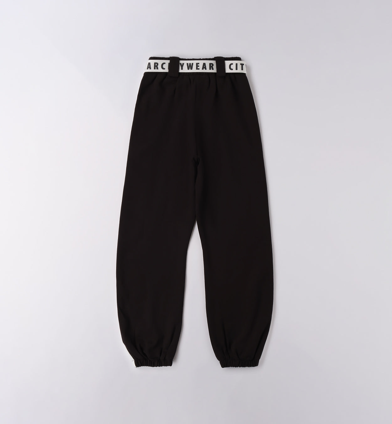 pantaloni jogger ragazza neri con bande bianche e cintura logata – jogger in felpa leggera con vita elastica e cintura in tessuto con maxi scritta a contrasto, pratico dettaglio che dona un tocco urban. il modello presenta bande laterali bianche, tasche comode e fondo gamba elasticizzato per una vestibilità sportiva e dinamica. perfetti per outfit casual dal carattere deciso, ideali da abbinare a felpe con zip o maglie stampate per la scuola e il tempo libero.