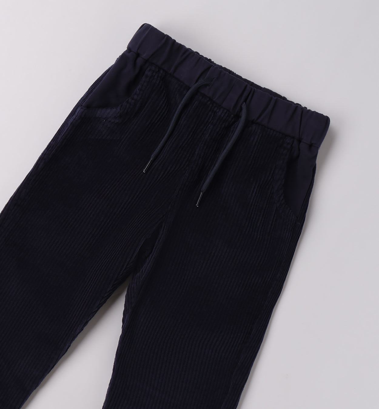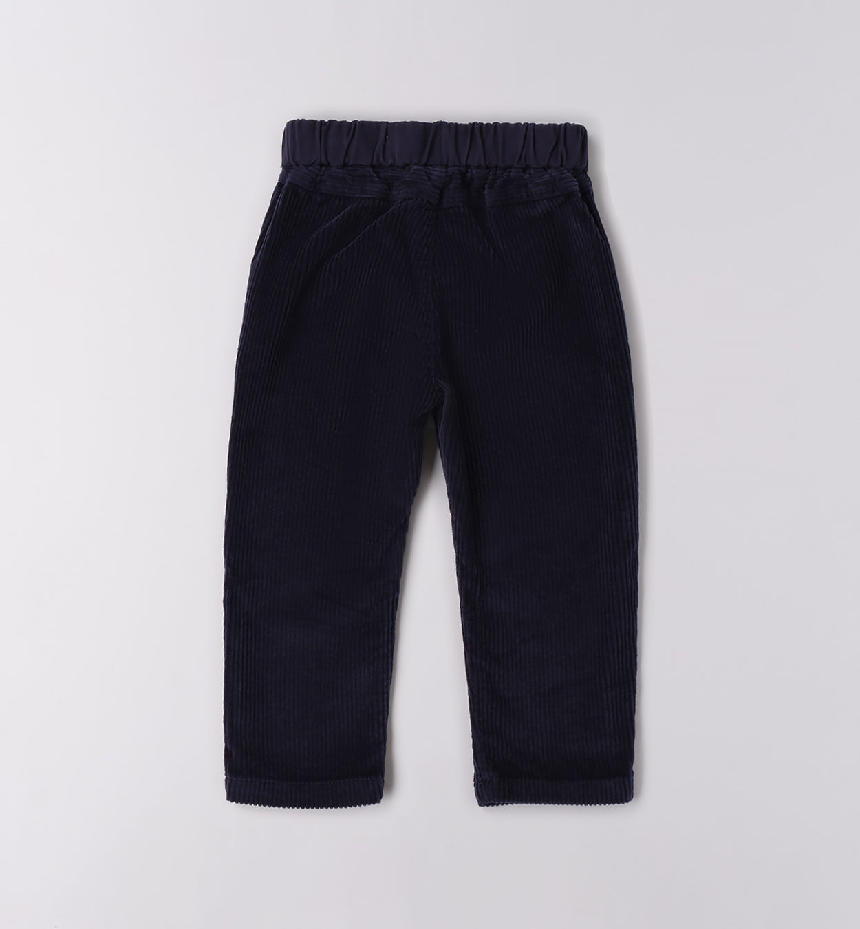 pantaloni bambino blu in velluto a coste tessuto navetta – modello dal taglio dritto realizzato in velluto a coste tessuto navetta, morbido e resistente, con vita elasticizzata e coulisse regolabile per il massimo comfort. pratico e caldo, con tasche laterali e fondo rifinito, è un capo versatile che si presta a look sia eleganti che casual. ideale da abbinare a camicie, maglioncini o felpe per accompagnare il bambino in ogni occasione.