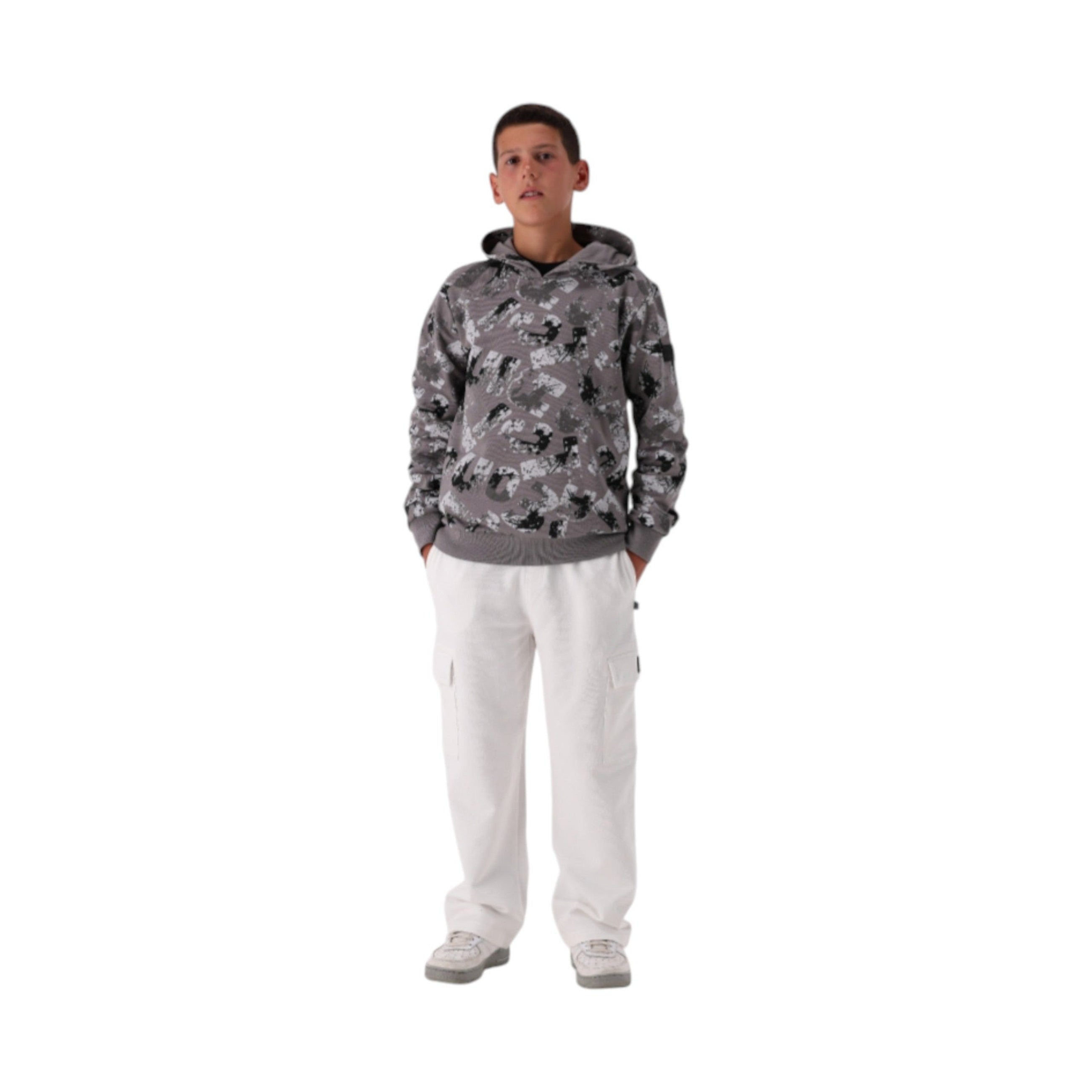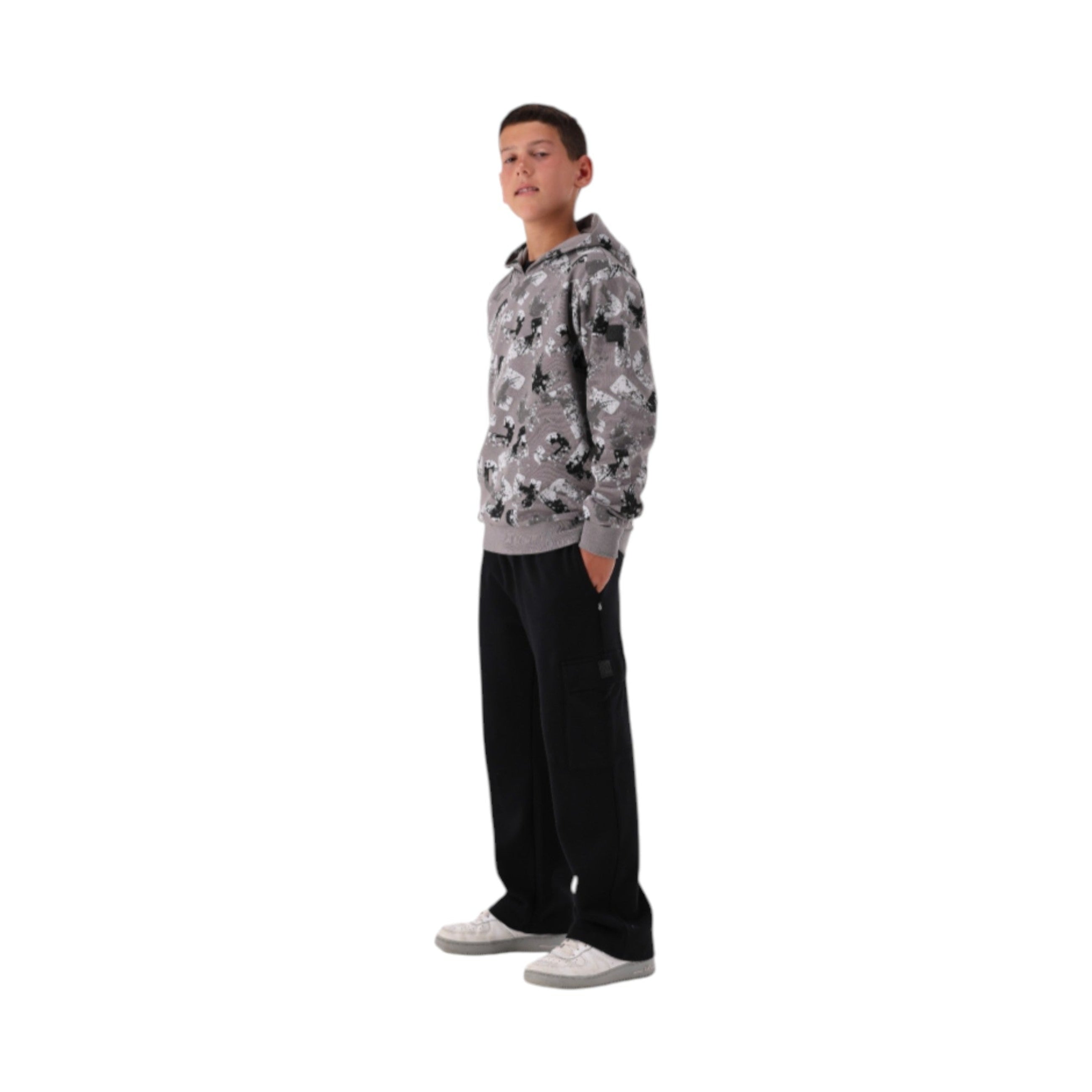 pantaloni cargo unisex in felpa con tasche laterali – disponibili in bianco e nero – jogger in morbida felpa con vita elasticizzata e coulisse regolabile, impreziositi da maxi tasche laterali con patta e logo applicato. modello comodo e moderno, perfetto per look streetwear quotidiani. ideali da abbinare a felpe o t-shirt per outfit pratici, sia per la scuola che per il tempo libero.